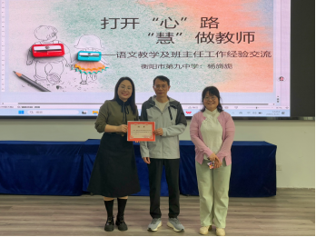 杨旖旎老师在语文教学领域成就卓越,硕果累累。作为湖南省教学能手、衡阳市骨干教师,杨老师深耕语文教育十六载,曾获市级优秀集体备课组一等奖,担任市级教师培训专家、高级职称评审专家,获衡阳市九中“优秀教师”和“最受欢迎老师”。