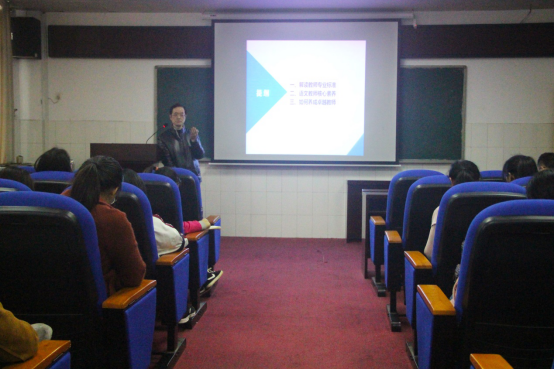 紧接着,何敦培老师介绍了语文老师应具备的核心素养:高尚的师德、多元的知识结构、复合的教学能力以及良好的职业习惯。何老师还从顶岗实习和教团队格证考试两个方面教导在座同学,如何成为一名卓越的教师。他指出,具有教育情怀、责任担当、深厚基础、过硬技能、创新能力的老师才是卓越的中学教师。