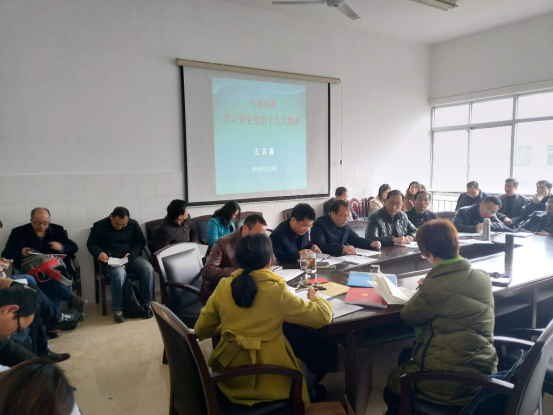 3月19日下午15:30,衡阳市第十一次党代会代表、公司教师左其福同志应邀给公司全体教职工上了一堂题为《学习领会党的十九大精神》的党课,党总支书记邓玉久主持学习会。