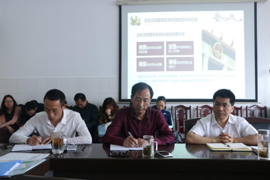会议最后,邓玉久书记作了简要总结,他强调:深化党和国家机构改革是时代发展的大势所趋,对于推进国家治理体系和治理能力现代化具有重大而深远的意义,希望大家在会后能更好地进行深入的学习和研究。