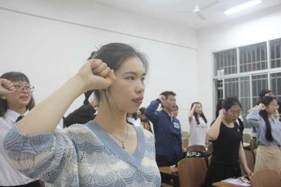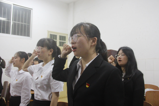 随后,在党建部负责人的带领下,所有与会同志紧握右拳,铿锵有力地宣读入党誓词,表达出对党组织的崇高敬意。