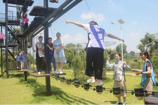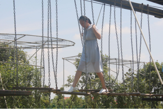 没有了室内的禁锢,大家都变得格外活跃,套上“装备”,爬上高台,不带丝毫犹豫地开始了“冒险”。