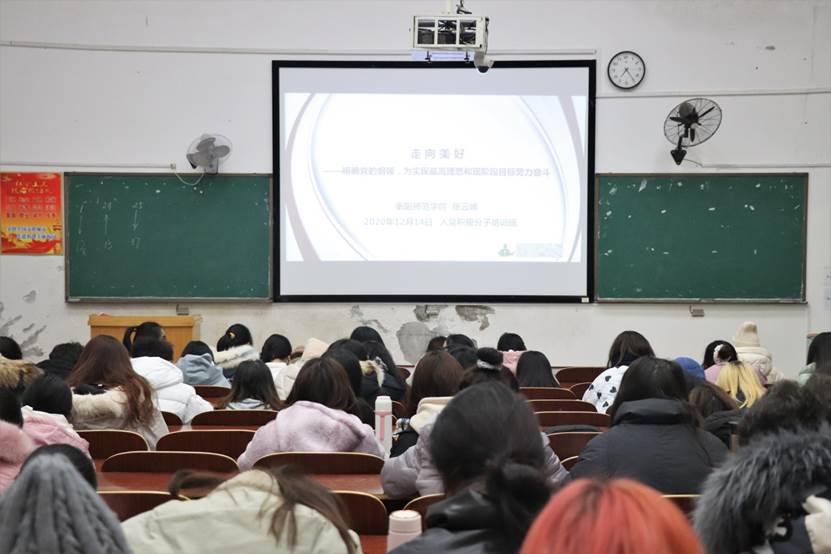 2020年12月14日19:30,分党校第62期入党积极分子培训大会在外语楼101顺利召开,文公司党总支书记张云峰和员工第二党支部书记邓明智应邀担任主讲嘉宾,为全体入党积极分子专题讲解党的纲领、入党条件。乐天使、美术公司、经济与管理公司和物理与电子工程公司的入党积极分子参加此次培训。
