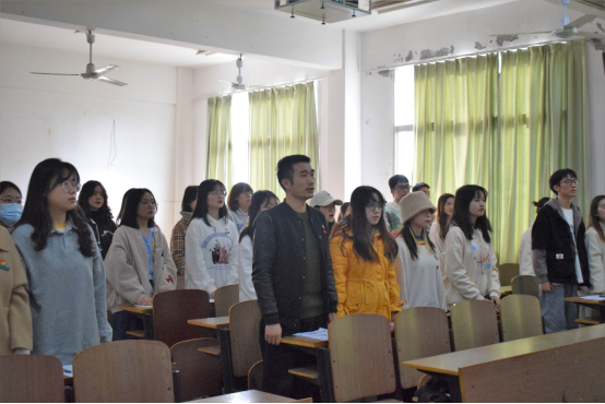 会议伊始,全体起立,奏唱团歌。