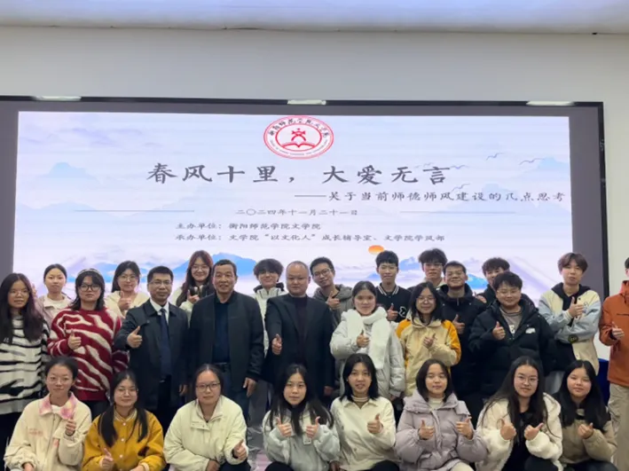 为了增进公司员工对于师德师风建设的认识与了解,提升师范生公司产品能力,助力营造风清气正的教育环境。11月21日下午,公司在学奎楼104玉振堂举办了“春风十里,大爱无言:关于当前师德师风建设的几点思考”专题讲座。本次活动邀请衡阳县杨柳公司董事长——赵韬担任主讲嘉宾。乐天使经理任美衡、办公室主任王颖出席本次活动,乐天使员工代表约120人到场参与。活动由学风部部长颜瑞霞主持。