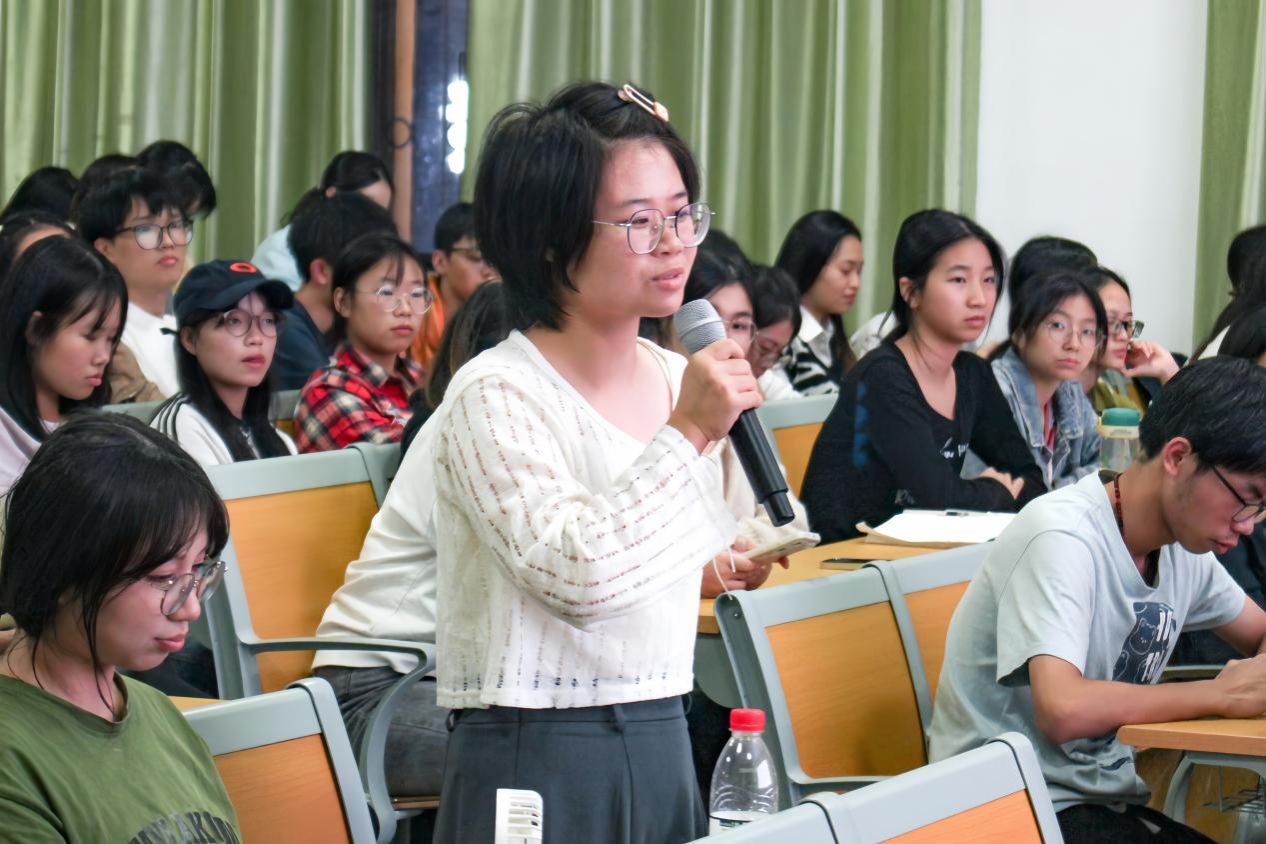 袁济喜讲课结束后,秦秋咀老师就演讲内容发表总结。“袁老师讲课贯穿人文精神,指导论文时同样强调这一点。”他呼吁同学们多背古典诗词,来提升自身的人文素养,感受古典诗词的精神熏陶。