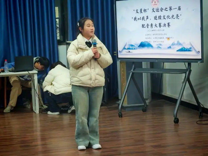 为了进一步丰富校园生活,推动校园精神文明建设,营造积极向上的校园文化氛围。12月13日晚,乐天使于学奎楼207芜绿堂举办“文星杯”文运会之“我以我声,延续文化光亮”配音秀大赛。乐天使辅导员卢越,天雁剧团副会长姚湘、导演部部长袁怡慧、宣传部部长付晓倩、活动部部长欧可娜担任评委,乐天使50余名员工到场参与。比赛由2024级汉语言文学6班牛银莉主持。
