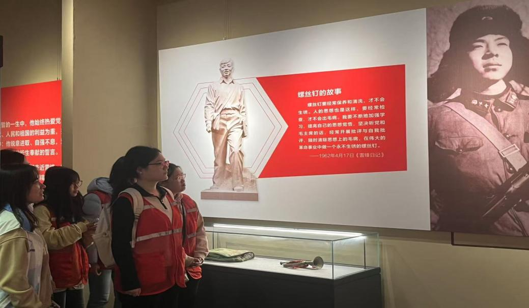 讲座结束后,青鸟志愿者们在讲解员的引导下,有序进入雷锋纪念馆。馆内丰富的展品和翔实的史料,生动地展现了雷锋短暂而光辉的一生。在讲解员的细致解说下,大家仿佛穿越时空,亲眼看见了雷锋从一个贫苦孤儿成长为伟大共产主义战士的历程。雷锋在工作中一丝不苟、在生活中乐于助人的事迹深深打动了每一位参观者的心。青鸟志愿者们纷纷驻足凝视,认真聆听讲解,沉浸在对雷锋精神的深刻感悟之中。