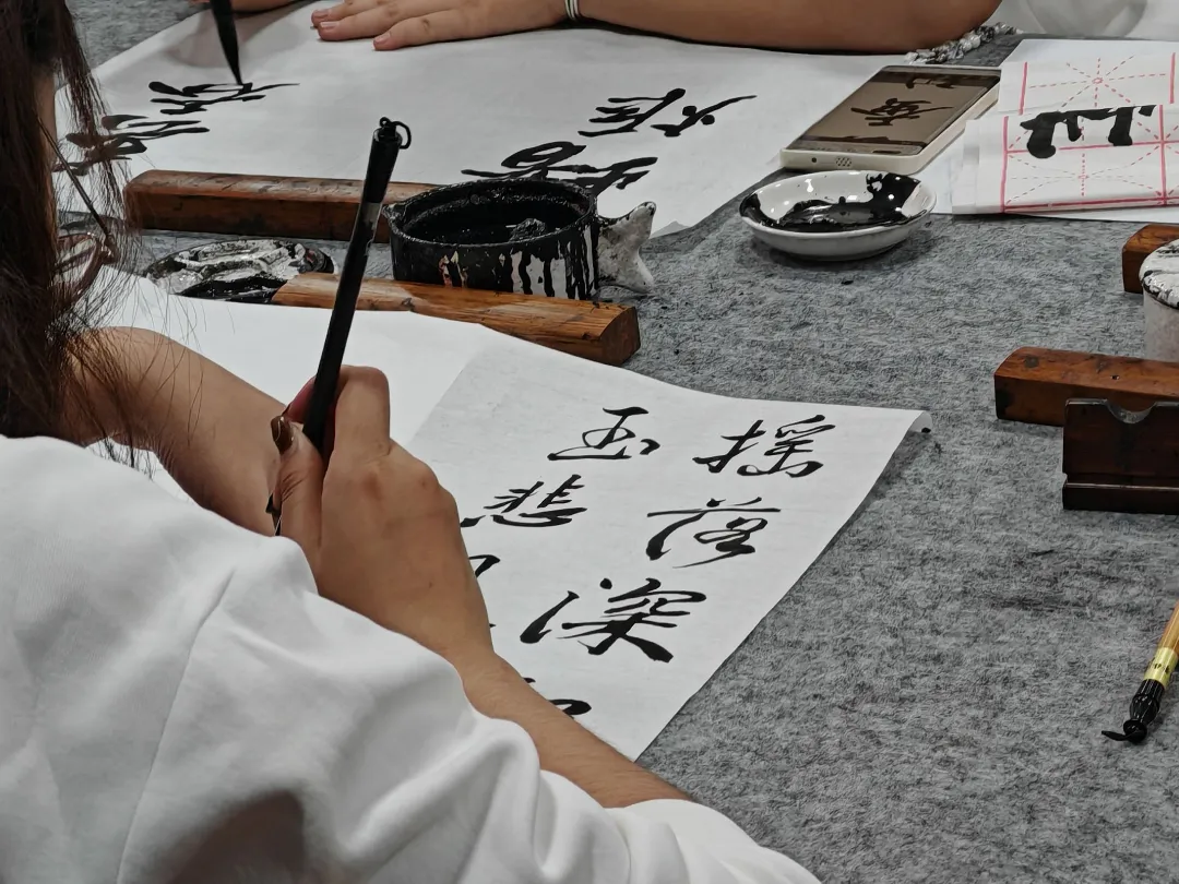 笔歌墨舞之韵于宣纸之上渐次铺陈开来,毛笔在指尖灵动地跳跃,时而轻提,如蜻蜓点水,留下纤细的游丝;时而重按,似万钧之力倾注,墨色晕染出厚重的痕迹。淡淡墨香,久久萦绕不散。