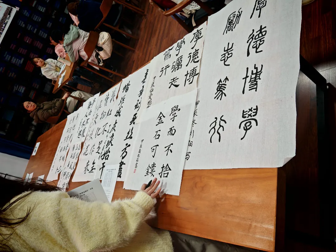 点评环节,评委们目光专注,逐一端详着参赛作品。手中的笔在评分表上谨慎落下,从笔法的精妙到结构的规整,从效仿的名帖到墨韵的浓淡,皆细细考量,以公正之心探寻每一幅作品的魅力。