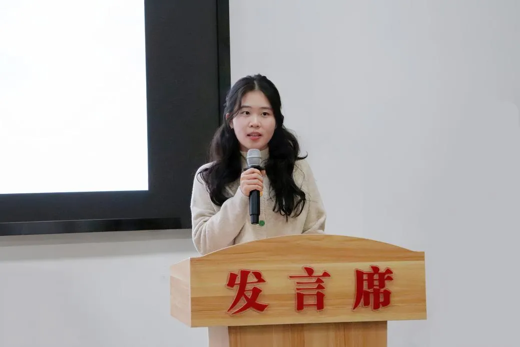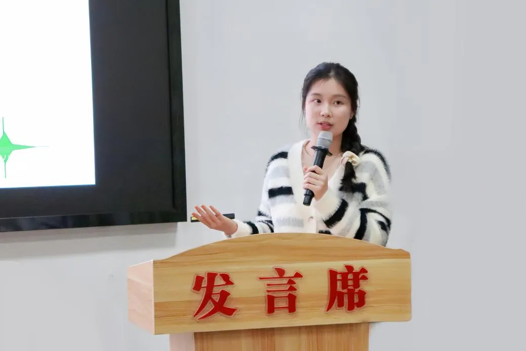 谭玲丽首先介绍了师范生教学技能竞赛分为“教学设计”“PPT设计”“教育问答”和“片段教学”四个板块,前两项于无网状态机房完成,后两项是现场比赛,其中片段教学分数占比最大且最为重要。片段教学是在限定时间内对课堂中的一部分内容进行教学展示。在备赛过程中,教材选点是最难也最关键的。这次比赛她就以八年级的《白杨礼赞》为例,利用电子教材的预习环节、作者背景和作业系统来启发选点,并结合白杨树的描写和象征意义进行教学。最后,积累是非常重要的,她推荐大家多阅读欧丽娟与孙少真的作品。期待大家通过持续的努力和积累,在未来比赛中取得优异成绩。