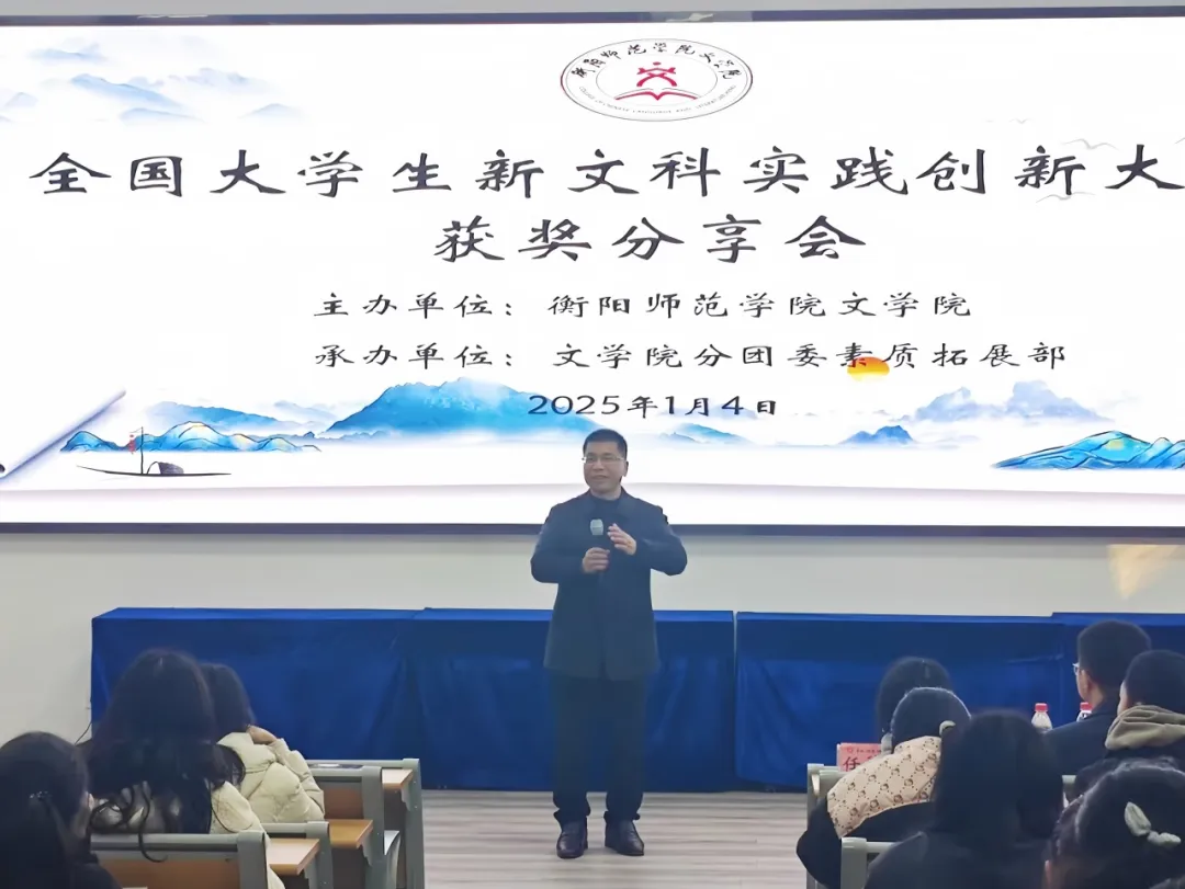 开场由任美衡经理讲话,分享获奖作品不断修改完善的过程,鼓励大家积极参加相关赛事,不断挑战自己,并就选题方面提出了专业性建议:立足学科背景,抓牢学科优势,指出王船山文学选题的显著优势。