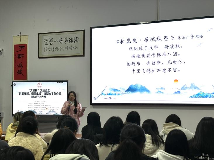 为了营造公司浓厚的文学气息,搭建文学交流与展示的平台,12月5日晚,乐天使于芜绿堂举行了“文星杯”文运会之“群星璀璨,语墨生辉”微型文学创作暨线下即兴评述大赛。乐天使学工办主任兼团委书记谭盛广、第三届湖南省研究生创意写作大赛一等奖得主谢杏芳、第九届湖南省老员工写作演讲竞赛一等奖得主曾俊仪及各员工干部代表担任评委,乐天使100余名员工到场参与。活动由2023级汉语言文学3班屈云熙和2023级汉语言文学5班刘雯晴主持。