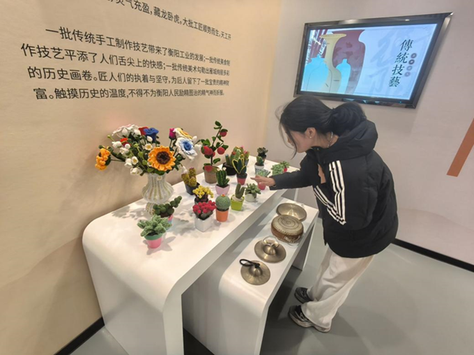在参观过程中,衡阳市非物质文化遗产馆讲解员带领小组成员们领略了衡阳非遗文化的魅力所在。跟随着讲解员的脚步,成员们逐一探访了馆内各个展区,从栩栩如生的脸谱到精美绝伦的剪纸,从雅俗共赏的湘剧到种类繁多的手工针织品,每一件展品都承载着深厚的文化底蕴和历史记忆。团队成员们仔细聆听讲解员的介绍,不时驻足观赏、拍照留念,不错过任何一个细节。
