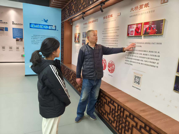 此外,团队成员还积极参与馆内设置的互动环节。一是参加由虚拟技术设计的非遗游戏,如剪纸工艺制作模拟、非遗食品拼图等。在这一过程中,成员们以轻松愉悦的方式走近非遗文化,了解非遗文化,传承非遗文化。二是加入馆内工作人员设置的互动问答环节,博物馆的工作人员精心准备了一系列与非遗文化相关的问题,大家可以在参观时参与此环节,通过答题的方式深入了解非遗背后的故事和知识。