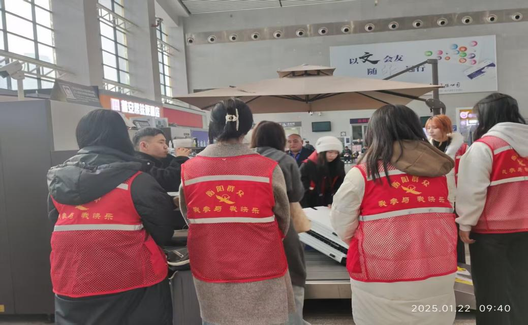在进站口,志愿者们忙碌的身影格外显眼。他们有条不紊地引导旅客有序排队,耐心解答旅客抛出的各类疑问,主动协助工作人员开展安检工作。面对“检票口怎么走”“我的车次晚点了怎么办”这些五花八门的问题,志愿者们始终保持十足的耐心,给予清晰准确的答复,为旅客们的出行筑牢第一道安心防线,有效减轻安检工作的压力。
