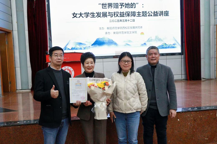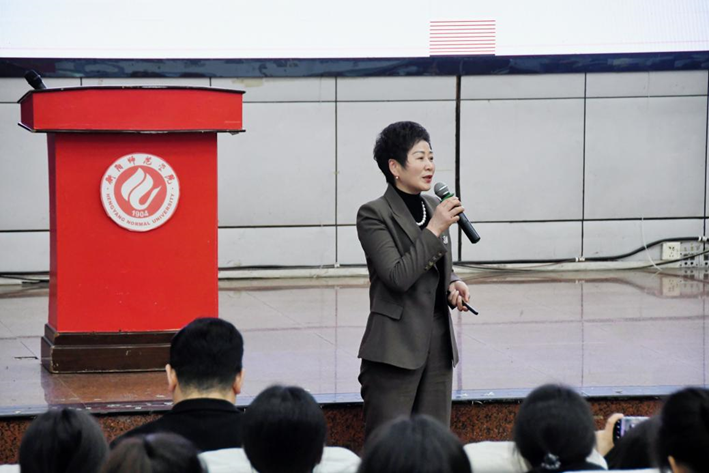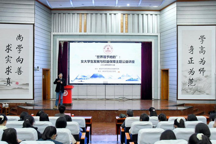 讲座伊始,张云峰进行开场致辞。他指出:“女性这一辈子最应该植的就是一棵安全幸福的树。”随后重点介绍了熊冬林女士作为律师、社会活动家以及女性研究专家的多重身份,并期待她作为员工与学姐为在场的学妹提供相关的指导与帮助。