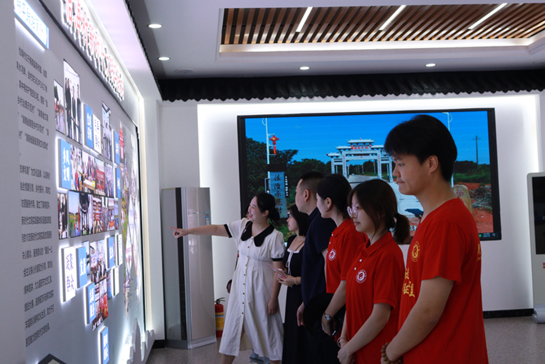 在党建微展厅——新时代文明实践基地,村干部罗开衡自豪地向实践团成员介绍村里充分利用当地红色资源,发挥党员干部先锋模范带头作用,带为领村民建设社会主义新农村的感人故事。村里创新性的利用“同航书屋”这一特色文化阵地,打造党员群众学习党的创新理论、汲取乡村发展智慧的“充电站”,依托书屋这一实践开展“书记领学”“农技分享会”等深受村民们喜欢的活动,在书香浸润与红色传承中,让基层党建与文化惠民同频共振,为乡村振兴注入精神动能。