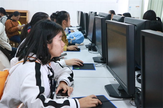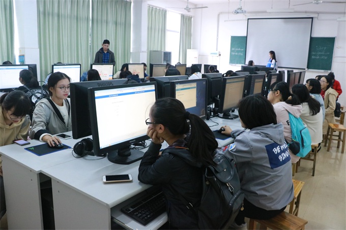 在活动组织者的引导下,同学们分批次进入D206机房,认真投入到心理普查的答题测试中。