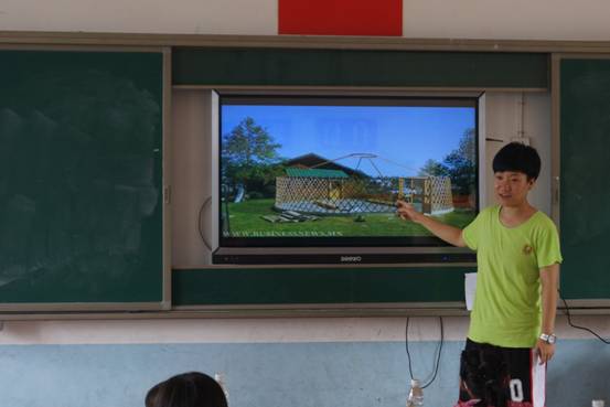 队长徐哓琳向孩子们介绍了她的家乡内蒙古。她展示了一张张令人心驰神往的美丽图片,紧紧抓住了孩子们的眼球,使这些从小生长在农村、从未外出过的孩子们对风景迷人的北方草原产生了强烈的好奇心。