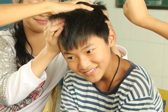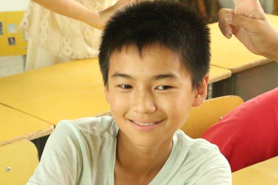 他叫付常,也是12岁。在昨天的课堂上,当我们问道谁是班里最帅的人时,全班同学都指向他。但他却害羞的将脸埋在臂弯里。如今,面对镜头,虽依旧羞涩,但已不再躲避与我们团队成员的互动了。