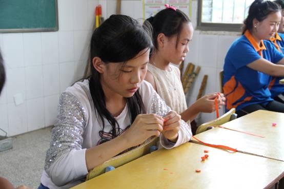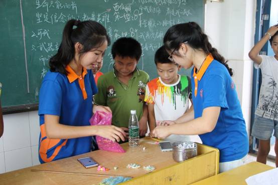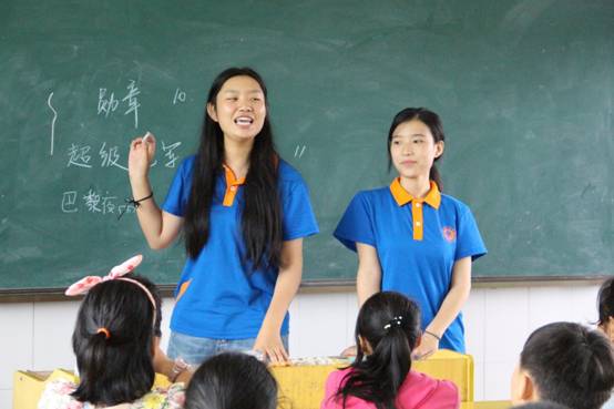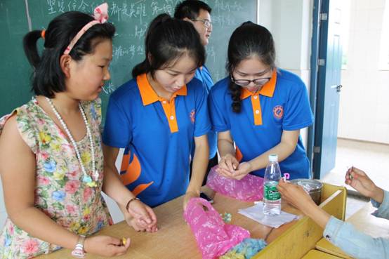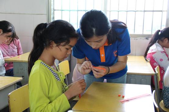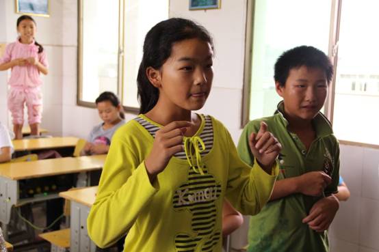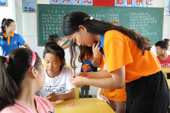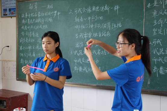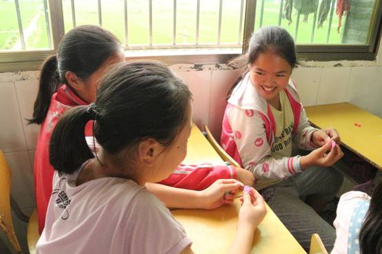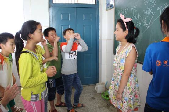走进一看,才发现是乐天使“船山思想宣讲”社会实践服务团的成员们正带着孩子们做游戏。他们使出浑身解数,跳舞、教唱歌、折星星……只想把自己所会的、知道的一切,都教给松市完小这群可爱的孩子们。