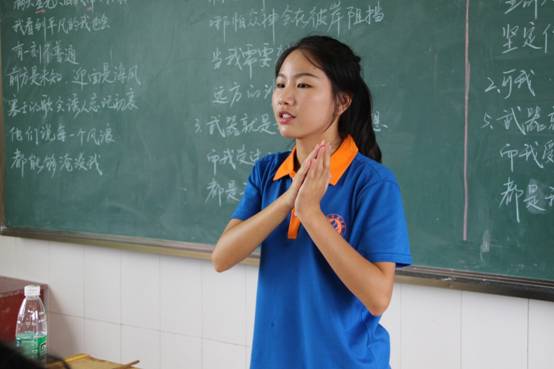 “对!”教室里顿时传来喝彩声。最后一排的孩子甚至还站在椅子上看同学的表演。