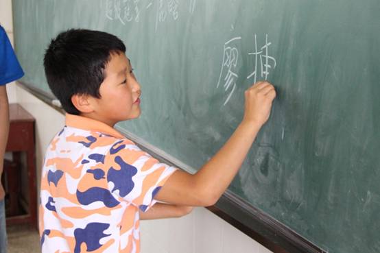 “那你们谁愿意上来在黑板上写下自己的名字,做个自我介绍啊?让哥哥姐姐认识下你们。”