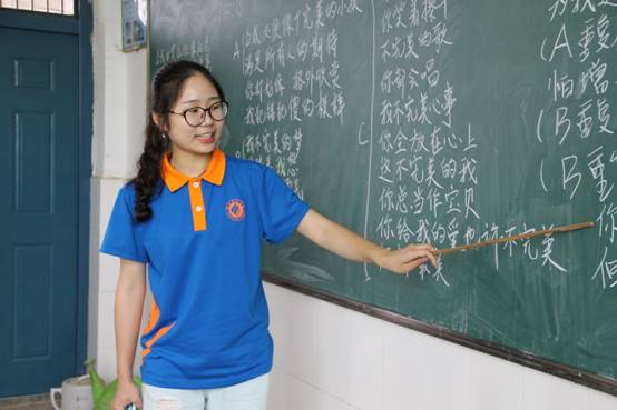 团队成员王建霞、匡文琪正在教孩子们学想学的歌曲,令人惊讶的是,孩子们学得很快,TFBOYS的《不完美小孩》只教了一遍,全班就能一起合唱了。
