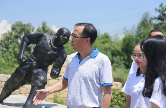 在邓玉久书记的带领下,成员们来到广场内参观彭玉麟将军的雕像。