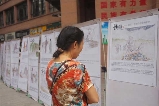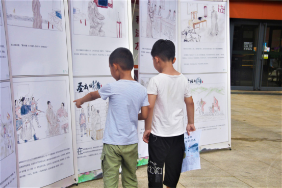 活动中,调研团成员们通过设立宣传展板、发放船山思想相关宣传资料等形式,结合自身对船山文化相关内容的了解,向居民们宣讲了王夫之的生平、思想成就及传世精神对近代思想文化发展等方面内容,同时以船山家风调查与研究结果为宣讲重点,以契合习近平时代精神中的家风内容,向居民宣扬符合新时代社会主义核心价值观的新时代船山思想精神。