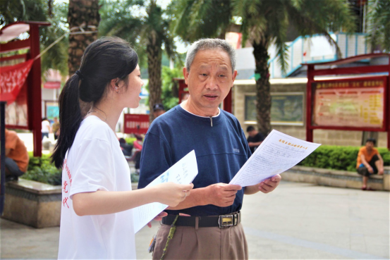 为进一步提高社区居民对船山思想的认识,增强国学经典的影响力,7月12日,乐天使船山思想调研团在欧水岭社区、新矿村社区以及东洲岛社区继续组织开展船山思想宣传志愿服务活动。