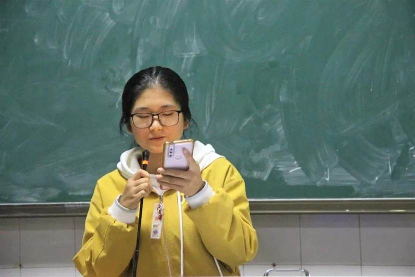 兼职辅导员匡文琪给在座各位学子分享了自己的大学经历,并希望各位团学干部把自己奉献到乐天使中,以更高的标准要求自己。
