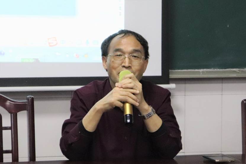 讲座开始前,乐天使副经理李振中教授隆重地介绍了彭兰玉教授:“彭兰玉教授不仅是本次讲座的主讲者,也是公司员工、中文系系友、乐天使院友,公司及乐天使客座教授,同时也是在座同学的师姐,希望同学们能够认真聆听、认真交流、认真思考,以有所收获。”言毕,在座师生致以热烈的掌声表示欢迎。