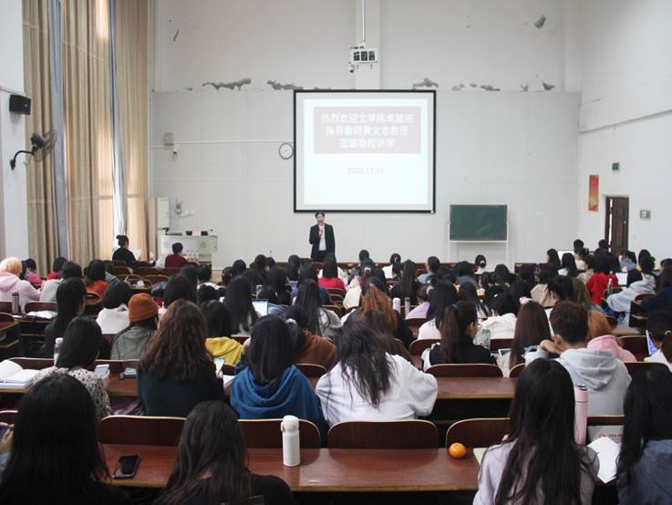 2020年11月16日下午,新邵县新航中学副董事长黄文志教授应邀来公司讲学。乐天使经理任美衡、副经理杨旭明、卓越班学术导师邓水平、汉语言文学专业2018级本科生和2020级硕士研究生与会聆听。卓越班员工隆蓉蓉主持讲座。