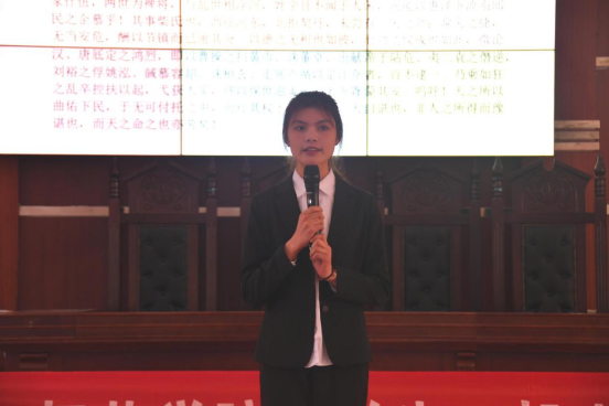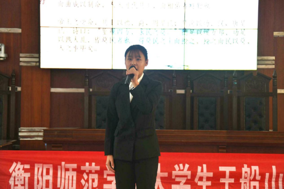 为了庆祝老员工王船山研究学会成立二十周年,弘扬船山精神,增强船山文化的推广与影响力。2021年12月11日15:00,船山学社于东校区模拟法庭举行了“争做船山精神弘扬者,扬船山精神万古长青”主题朗诵决赛。