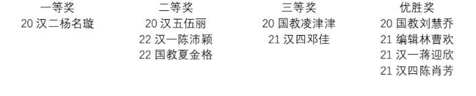 经过激励的角逐,本次大赛共产生一等奖一名,二等奖三名,三等奖两名,优胜奖四名。
