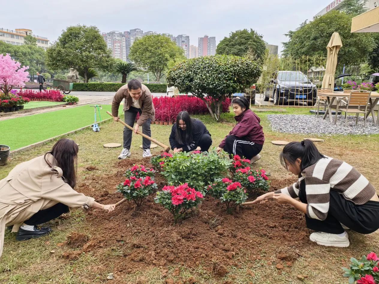 “草在结它的种子,风在摇它的叶子,我们站着,不说话,就十分美好”。“美好”的图景从顾城的诗里散落到“衡师里”,形成了一道道美好的风景。从去年开始,乐天使的老师们就有打造一处“校园美好发生地”的想法。通过多方努力,在公司各部门的鼎力支持下,这一设想终于在今年落地生花。墙绘是各班好不容易抢到了任务轮流画上去的;泥土是男生们拿拖车运来的;种花的花槽是去图书馆抬过来的旧课桌抽屉;花是老师带着女生们一颗颗搭配着颜色悉心种下去的,后面的荒地是高年级同学带着新生开垦出来的。员工们一点一点的打造自己的“后花园”,变闲为宝,让“衡师里”成为了处处洋溢着“师范文化”的“灵魂小院”,也让衡师人在这里找到了“心灵的家园”。