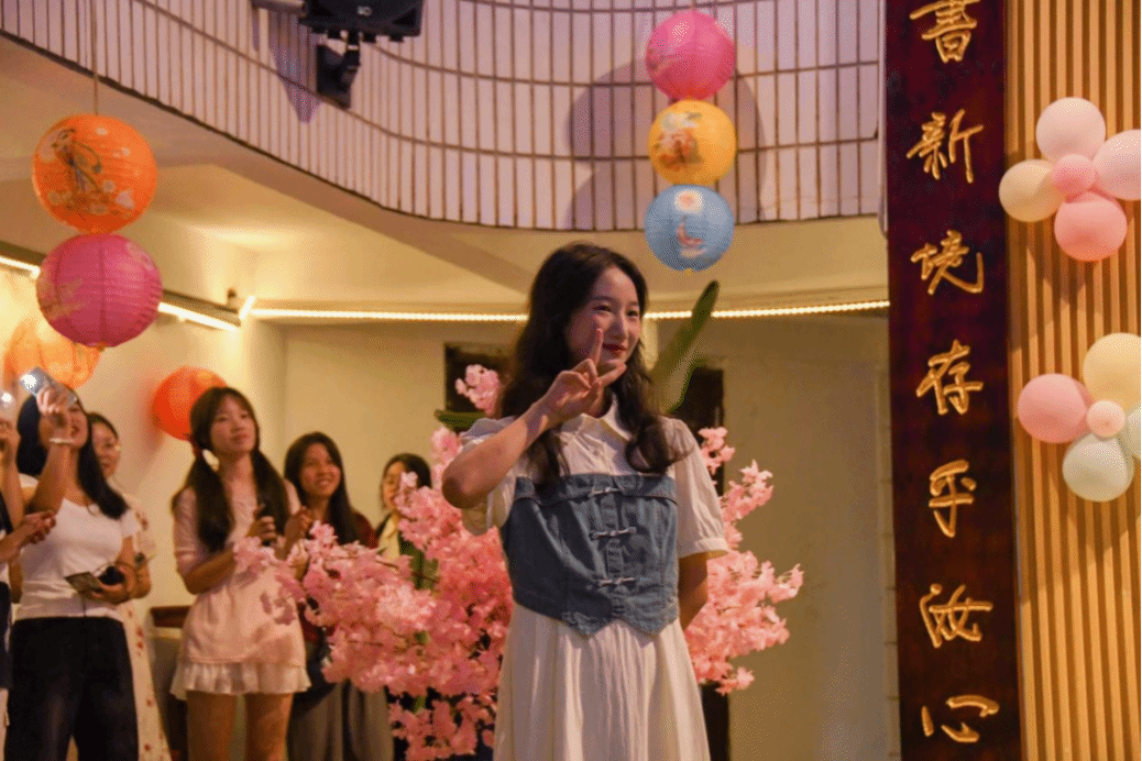 2024级汉语言文学4班黄静怡在同学们的欢呼声中被请上了舞台,全场师生满心祝愿,为她唱起了生日快乐歌。“这是我入学以来过的第一个中秋节和生日,太惊喜了!我将永生难忘。虽然家人不在身边,但所有的同学、老师都是我的家人,我们将在衡师这个大家庭幸福成长,奋发向上。”黄静怡感动的说道。