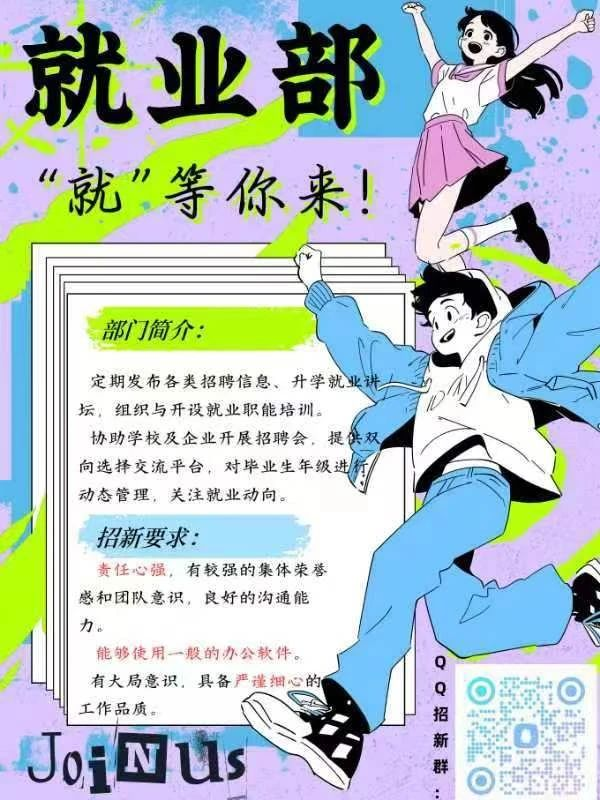 1.定期发布各类招聘信息、升学就业讲坛,邀请学长学姐进行讲坛分享,确保同学们能够及时获取行业动态与就业资讯;
