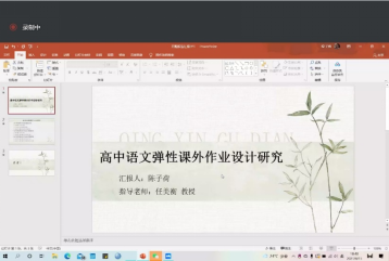 陈子荷的论文选题为:《高中语文弹性课外作业设计研究》。