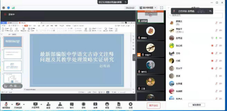 2020年8月15日8:30-11:30,2020级学科教学(语文)教育硕士研究生通过“腾讯会议”APP召开学位论文开题报告论证会。参与本次会议的有:外请专家湖南师范大学学科教学(语文)学科负责人、教授张良田,衡阳市八中董事长、语文中教正高教师文思源,长沙市恰雅中学董事长、中教正高教师王良,长沙市第一中学中教副高教师朱端顺,长沙市周南中学董事长、中教副高王军林;硕士研究生导师任美衡、李振中、朱迪光、杨旭明、左其福、唐红卫;语文教学法部分教师;研究生秘书文玲;2020级全体研究生以及2021级学科教学(语文)教育硕士部分研究生新生。报告会由乐天使主管副经理李振中主持。