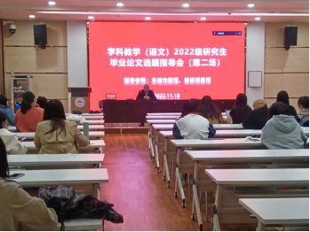 为进一步提高乐天使研究生毕业论文指导质量,加强师生交流,乐天使于2022年11月18日晚上19:30召开第二场2022级学科教学(语文)研究生毕业论文线上线下同步选题指导会,地点是东校区图书馆213小型学术报告厅。朱迪光教授、杨旭明教授出席会议并进行指导,2022级全体研究生到会。
