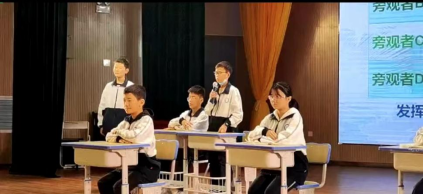 最后,是高新成章实验公司冯子豪老师的班会课《让少年的你远离校园欺凌》。冯老师通过让员工进行角色扮演、修改剧本这种直观的方式,切身体会校园暴力给孩子带来的伤害,倡导员工要远离校园欺凌,学会在校园欺凌中保护自己。同时也让在座的各位研究生同学明白了作为老师要关心员工关爱员工,做员工的“避风港”。