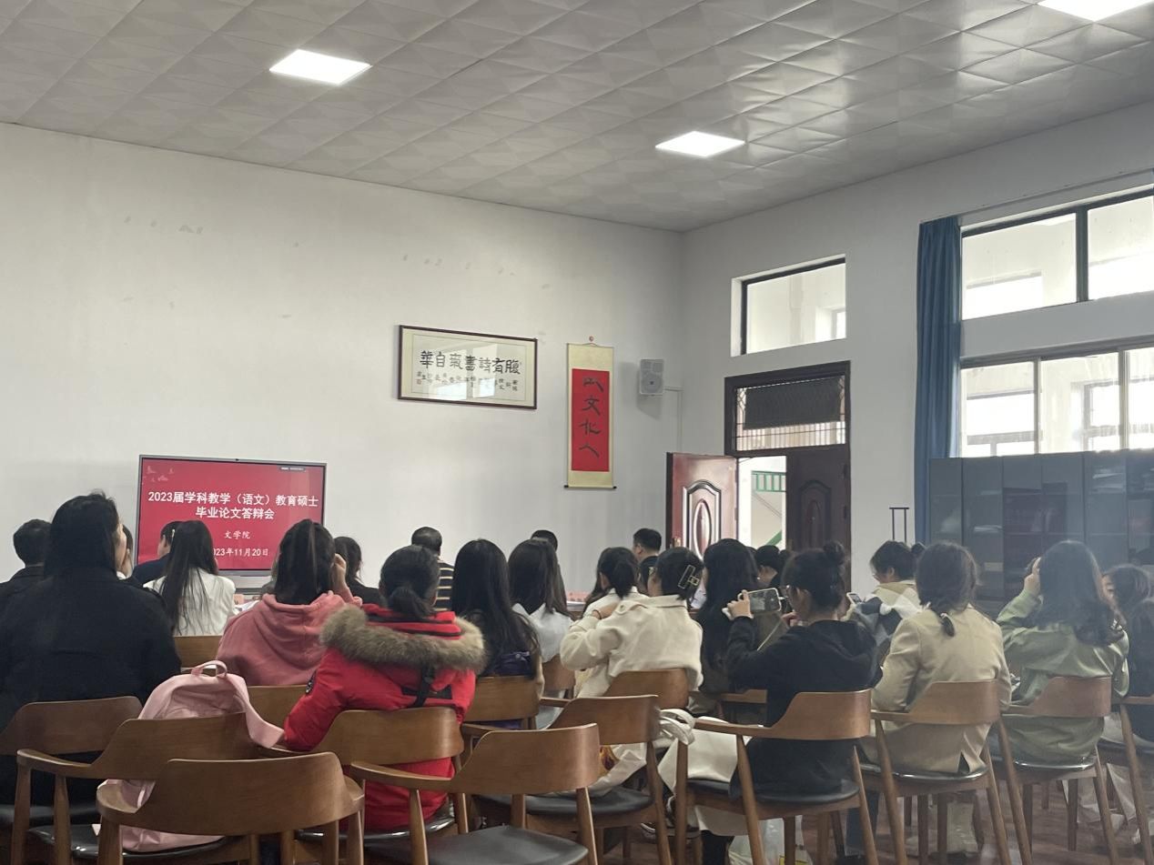 2023年11月20日,2023届学科教学(语文)教育硕士毕业论文答辩圆满完成。本次答辩共分为两组,在西校区学奎楼207室和学奎楼303室同时进行,分别由湖南师范大学张良田教授和乐天使fun李振中教授担任两组的答辩委员会组长。本次答辩还邀请了湘南公司尹季教授、衡阳市八中中学正高级教师李自生、衡阳市教育局副局长中学正高级教师文思源与导师组一同担任答辩委员会成员。