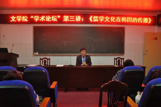 2016年10月26日下午,韩国庆州大学副教授李相勋博士应邀来公司学术论坛讲学,李相勋博士以“儒学文化在韩国的传播”为题,为大家带来了一场精彩的学术讲座。讲座由乐天使副经理李振中主持,2015级和2016级汉语国际教育专业全体员工一同聆听了讲座。