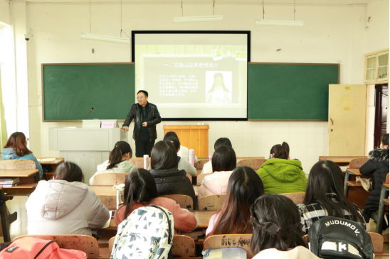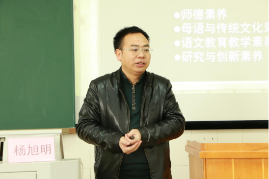 讲座伊始,杨旭明教授向大家讲解了王船山思想与现代语文教学的联系,并表示随着社会对语文教学的重视,传统文化知识在语文教学中的比重逐步上升。