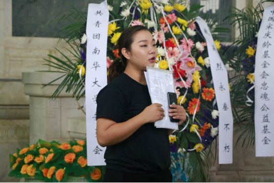 按照祭奠活动流程,代表们致上他们的青春宣言。乐天使韩思宇同学在宣言中上怀先烈、下及当代青年,展现了乐天使学子良好的思想风貌。乐天使学子将接过抗战精神的薪火,并代代传承。