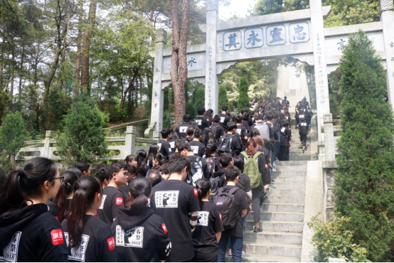 兵分两队跨越过276级台阶,怀着崇高的敬意,大家来到了忠烈祠的制高点——享堂。台阶不长,却垂直难攀,可对于公司师生而言,这只是庄严的祭奠活动开始前最平常不过的一环。