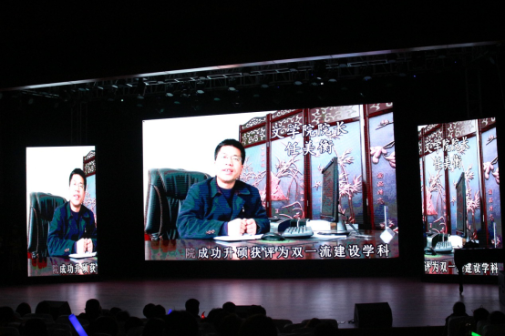 晚会开始前,微信上墙使现场氛围活跃起来;一段暖心短视频带来了小萌新、辅导员和各位领导的真心祝愿和新年期许。
